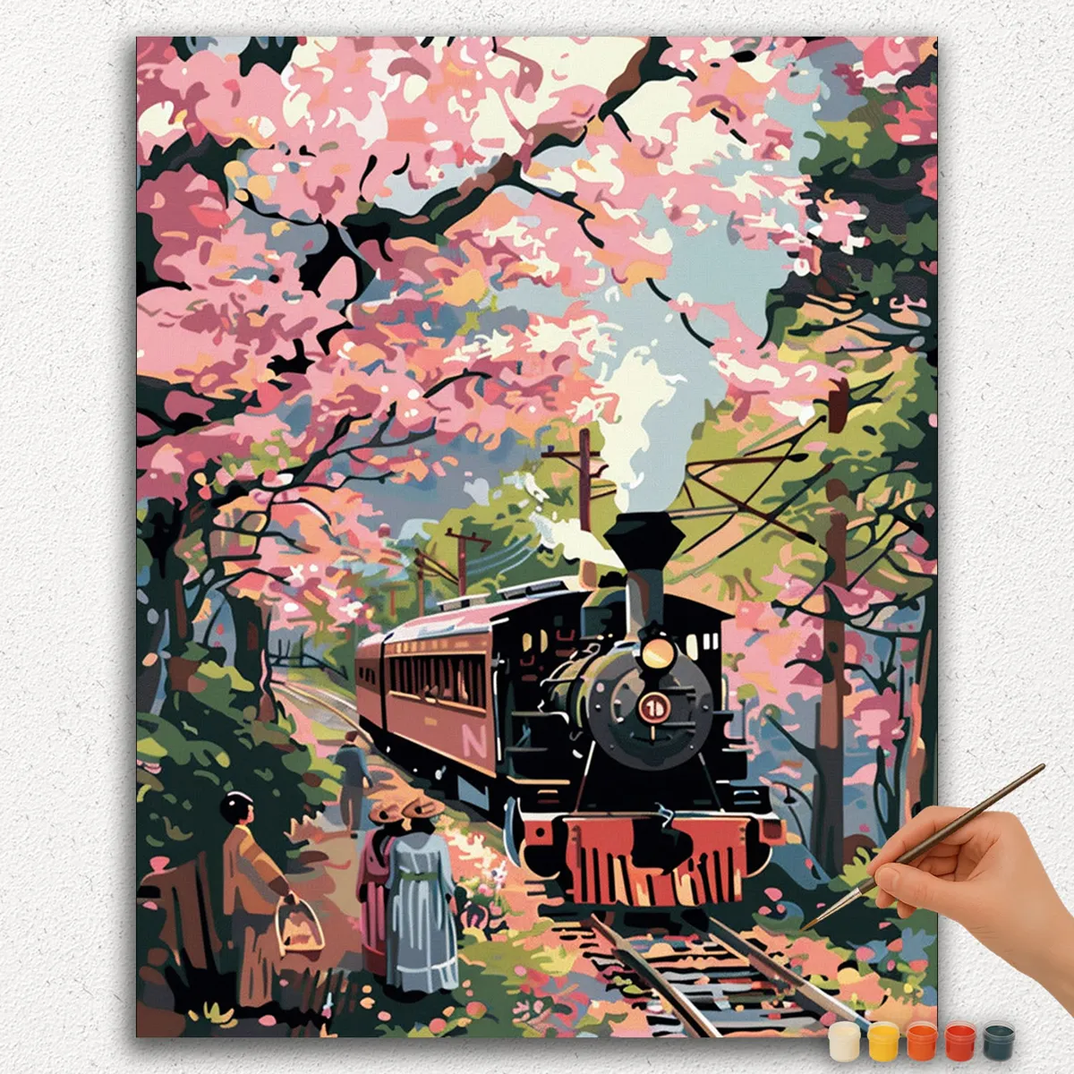 Verwandeln Sie Ihren Raum mit unserem bezaubernden DIY-Malset “Blumen und Zug”. Dieses entzückende Malen-nach-Zahlen-Set zeigt eine charmante Szene mit blühenden Blumen neben einem Vintage-Zug und schafft so eine perfekte Mischung aus Natur und Nostalgie.
