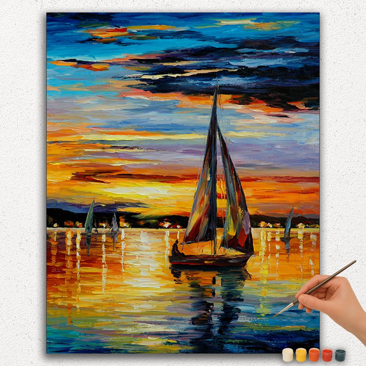 Fangen Sie die Schönheit eines friedlichen Sonnenuntergangs über ruhigem Wasser mit unserem DIY-Malset „Boot und Sonnenuntergang“ ein. Dieses leicht verständliche Set ermöglicht es Ihnen, Ihr eigenes Meisterwerk zu schaffen, perfekt für Anfänger und erfahrene Künstler gleichermaßen.