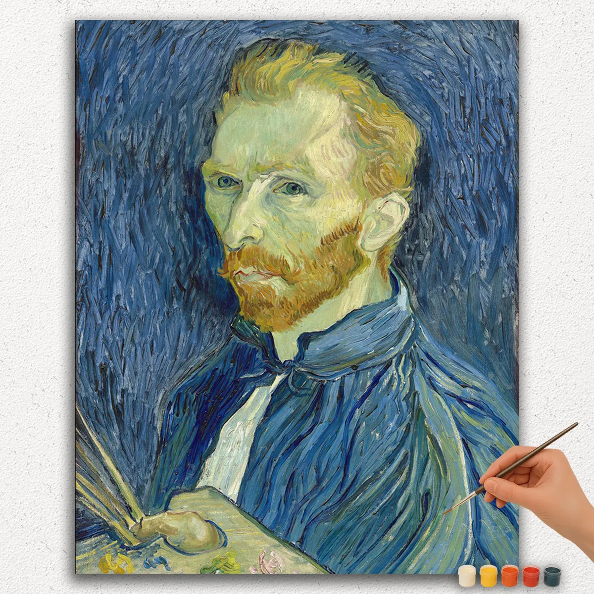 Verwandeln Sie Ihren Wohnraum mit diesem atemberaubenden Van Gogh Selbstporträt Malen nach Zahlen Kit. Perfekt für Anfänger und Kunstliebhaber gleichermaßen, mit diesem Set können Sie das berühmte Werk des Meisters Schritt für Schritt nachbilden.
