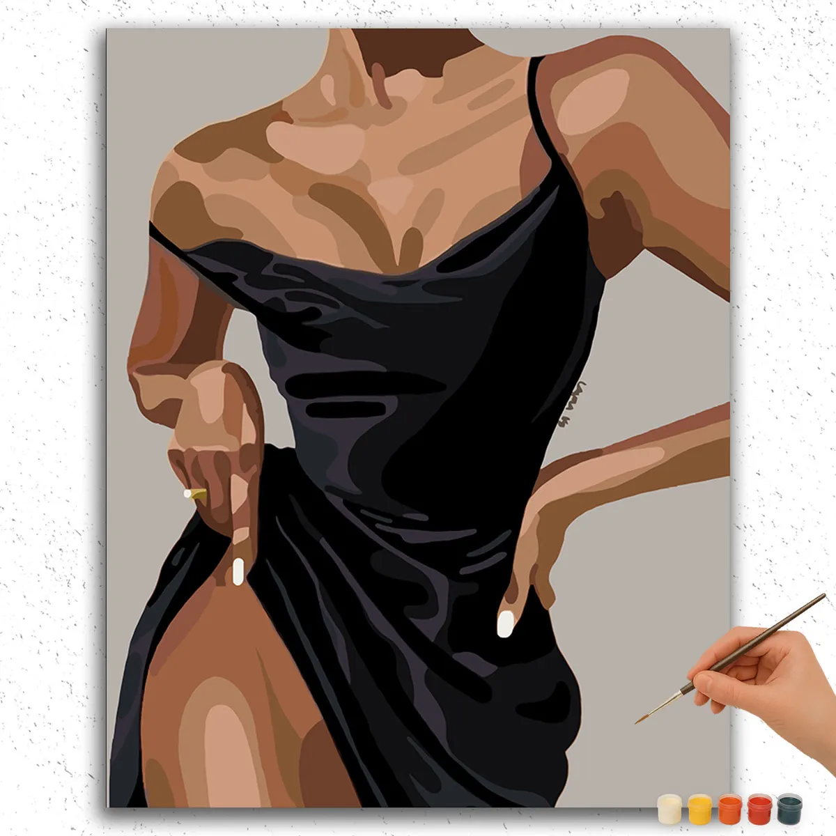 Verwandeln Sie Ihr Zuhause mit dem DIY-Malset „The Beauty in Black“. Dieses elegante Kunstwerk zeigt ein umwerfendes schwarzes Kleid, das jedem Raum Raffinesse verleiht. Das Set enthält alles, was Sie brauchen: eine vor nummerierte Leinwand, hochwertige Acrylfarben und Pinsel.