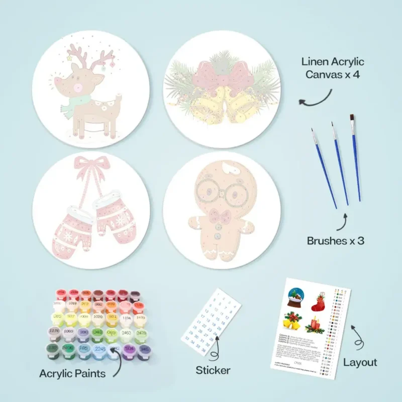Sie erhalten alle benötigten Zubehörteile, um Ihr DIY-Tischset-Projekt abzuschließen. Sie erhalten die unten aufgeführten Artikel.- Leinen-Acryl-Leinwand (4er-Set)