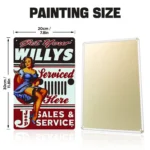 Verleihen Sie Ihrem Zuhause oder Ihrer Bar einen Hauch von Vintage-Charme mit dem DIY Metallposter „Willys Service“. Dieses einzigartige Stück misst 20x30cm oder 7,8×11,8 Zoll und hat abgerundete Ecken für ein elegantes Finish. Das Vintage-Design macht es zu einer perfekten Ergänzung für Liebhaber klassischer Themen. Es ist eine hervorragende Möglichkeit, Ihren Raum mit einem nostalgischen Gefühl zu personalisieren.