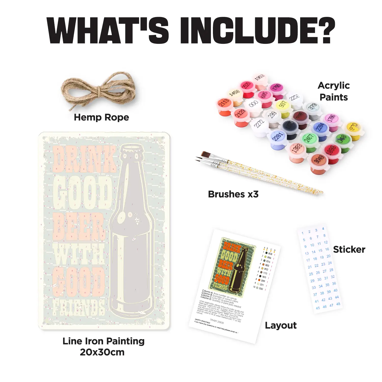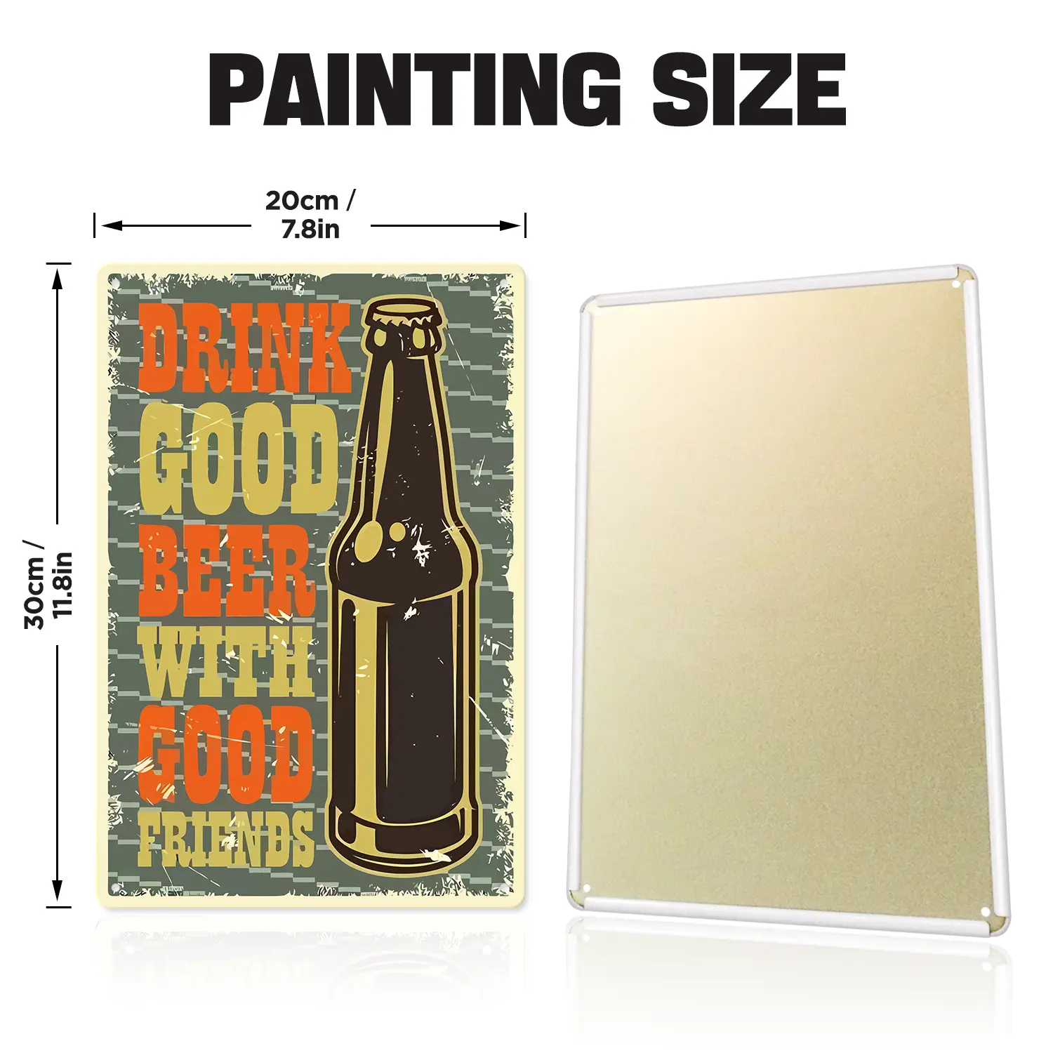 Verschönern Sie Ihre Bar oder Ihr Zuhause mit dem Drink Good Beer DIY Metallposter. Dieses Poster im Vintage-Stil misst 20x30cm oder 7.8×11.8 Zoll und verfügt über abgerundete Ecken für einen eleganten Look. Aus strapazierfähigem Metall gefertigt, verleiht es jedem Raum einen Hauch von Nostalgie. Perfekt für Bierliebhaber, ermöglicht Ihnen dieses DIY Malen-nach-Zahlen-Poster, ein einzigartiges Kunstwerk zu schaffen, das Ihre Persönlichkeit widerspiegelt. Seine kompakte Größe macht es ideal für kleine Räume, während sein Vintage-Design dafür sorgt, dass es gut zu moderner und traditioneller Einrichtung passt.