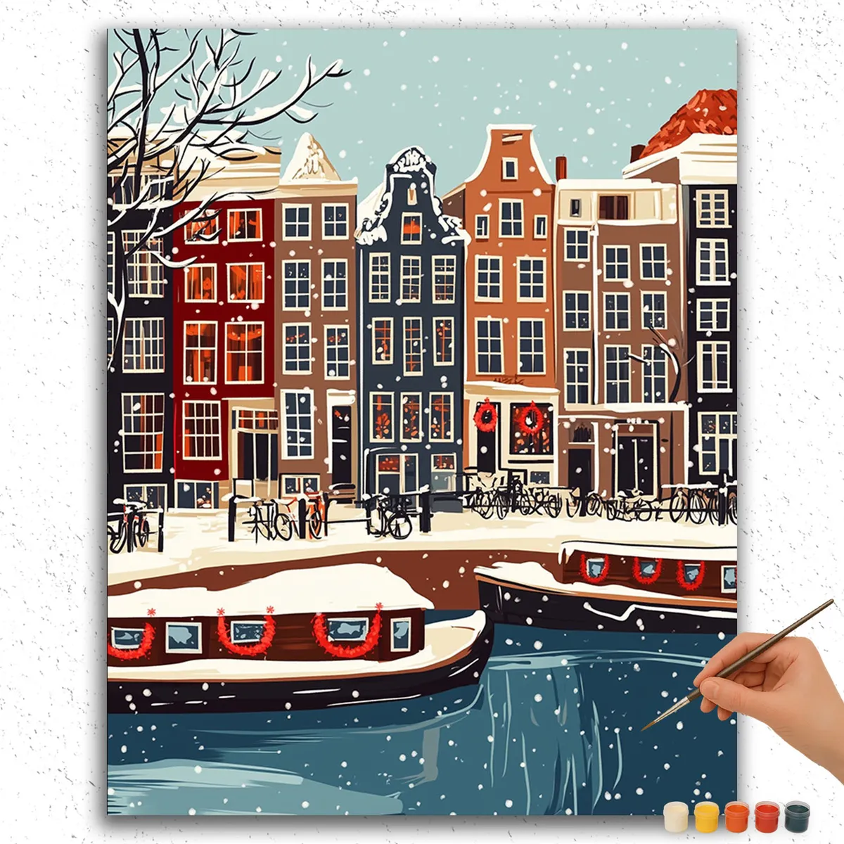 Verwandeln Sie Ihre Wände mit unserem Malen-nach-Zahlen-Set ‘Schnee auf Gebäuden’. Diese Winterszene fängt die friedliche Schönheit verschneiter Architektur in atemberaubenden Details ein. Das Set enthält eine vorbedruckte Leinwand, hochwertige Acrylfarben und feine Pinsel für ein angenehmes Malerlebnis.