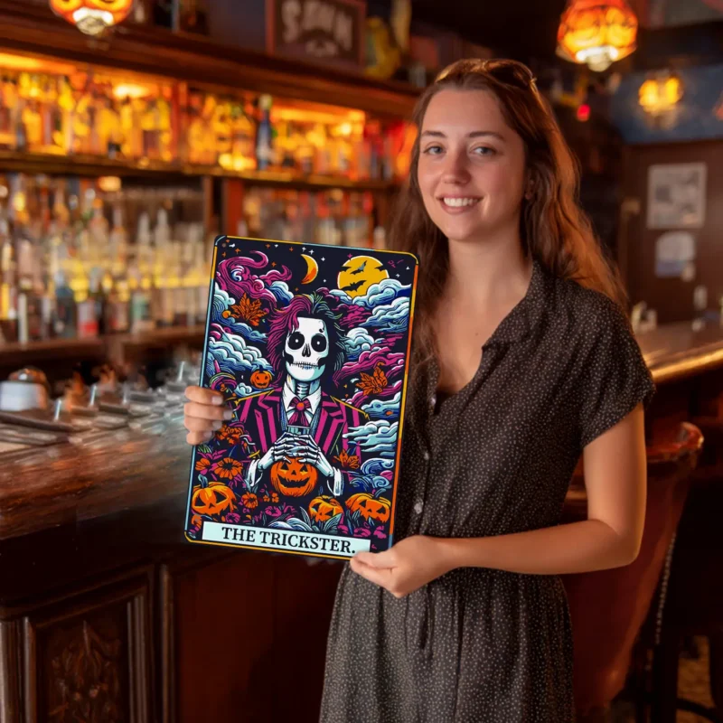 Veredeln Sie Ihr Zuhause oder Ihre Bar mit dem Spooky Trickster DIY Metallkunstwerk. Dieses Metallposter im Vintage-Stil misst 20x30cm oder 7.8×11.8 Zoll und verfügt über abgerundete Ecken für ein elegantes Aussehen. Perfekt, um einen Hauch von Geheimnis und Faszination hinzuzufügen, ermöglicht Ihnen dieses DIY-Malen-nach-Zahlen-Kunstwerk, Ihrer Kreativität freien Lauf zu lassen. Das Metall-Finish verleiht ihm eine langlebige und moderne Haptik und macht es zu einer einzigartigen Ergänzung für jeden Raum.