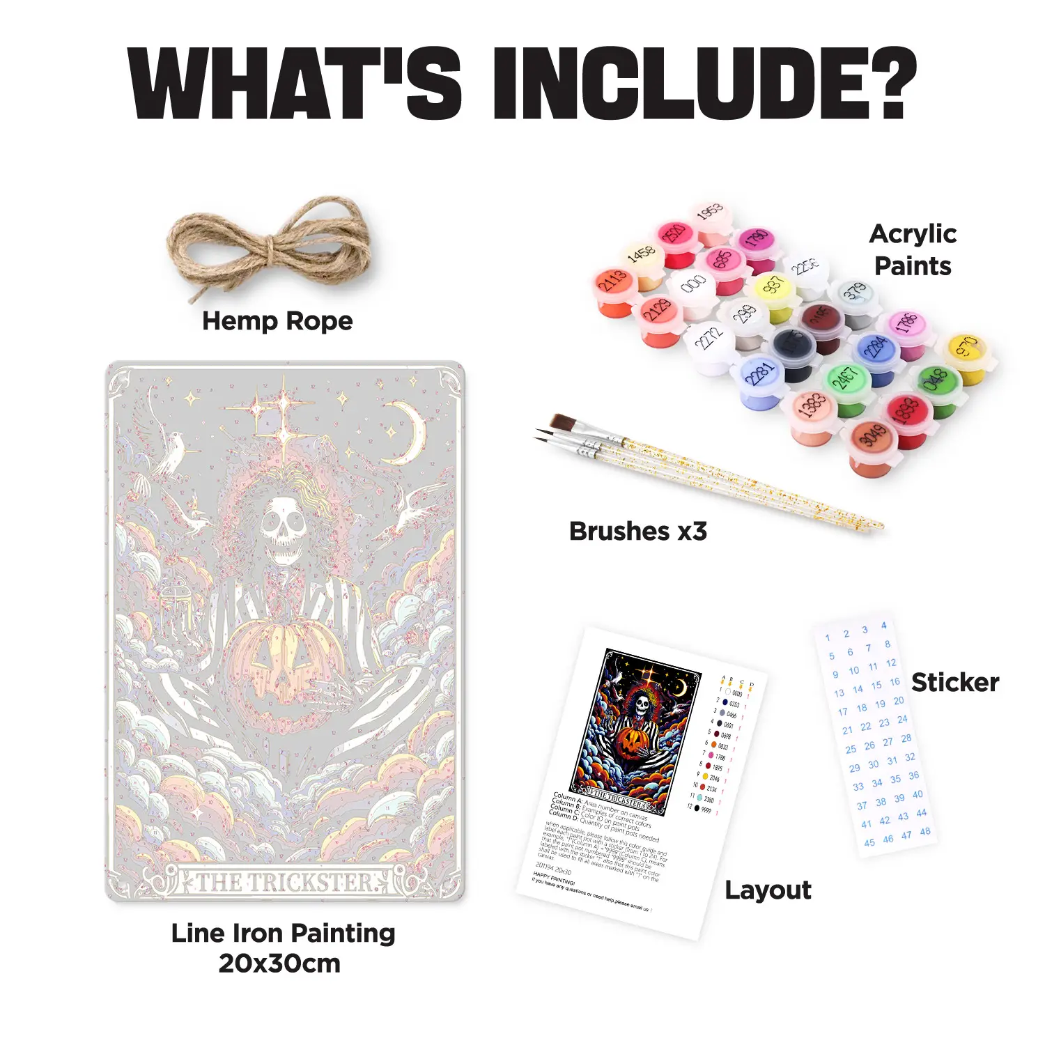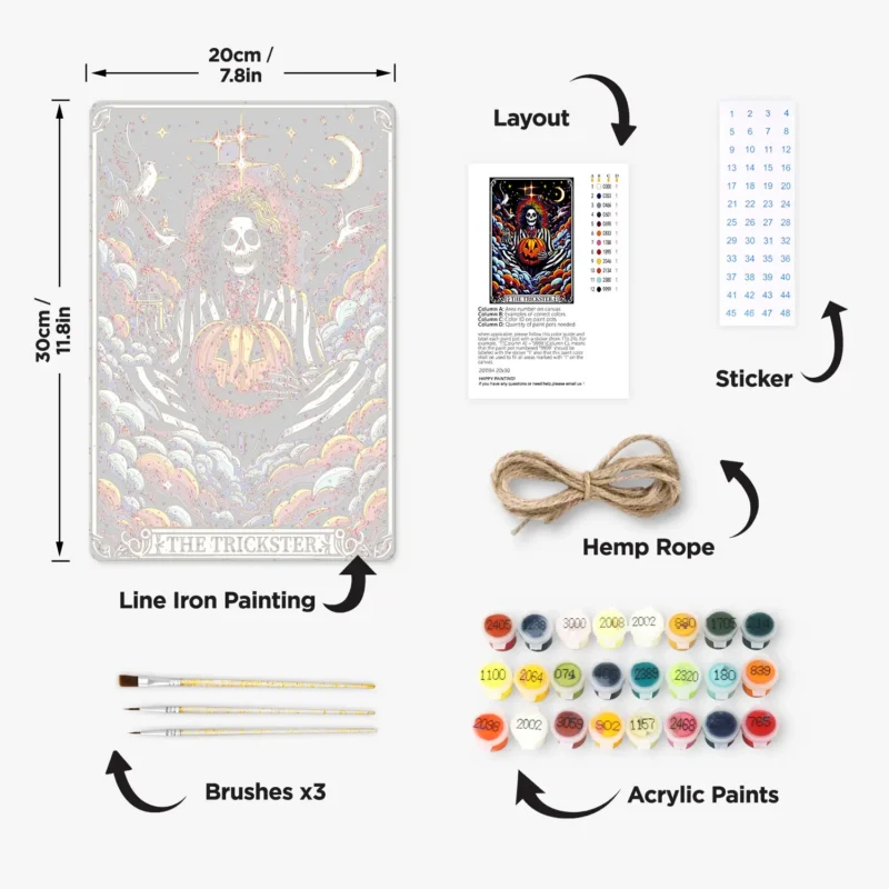 Das Trickster DIY Metallposter ist ein einzigartiges, von Vintage inspiriertes Stück, das perfekt ist, um Ihrem Zuhause oder Ihrer Bar einen Hauch von Mystik zu verleihen. Mit den Maßen 20x30cm oder 7.8×11.8 Zoll verfügt dieses Poster über abgerundete Ecken und Kanten, was ihm ein glattes, modernes Finish verleiht. Das Malen-nach-Zahlen-Design ermöglicht es Ihnen, Ihrer Kreativität freien Lauf zu lassen und es in ein personalisiertes Kunstwerk zu verwandeln. Seine kompakte Größe macht es ideal für kleine Räume, während sein Vintage-Stil jedem Raum einen nostalgischen Charme verleiht.