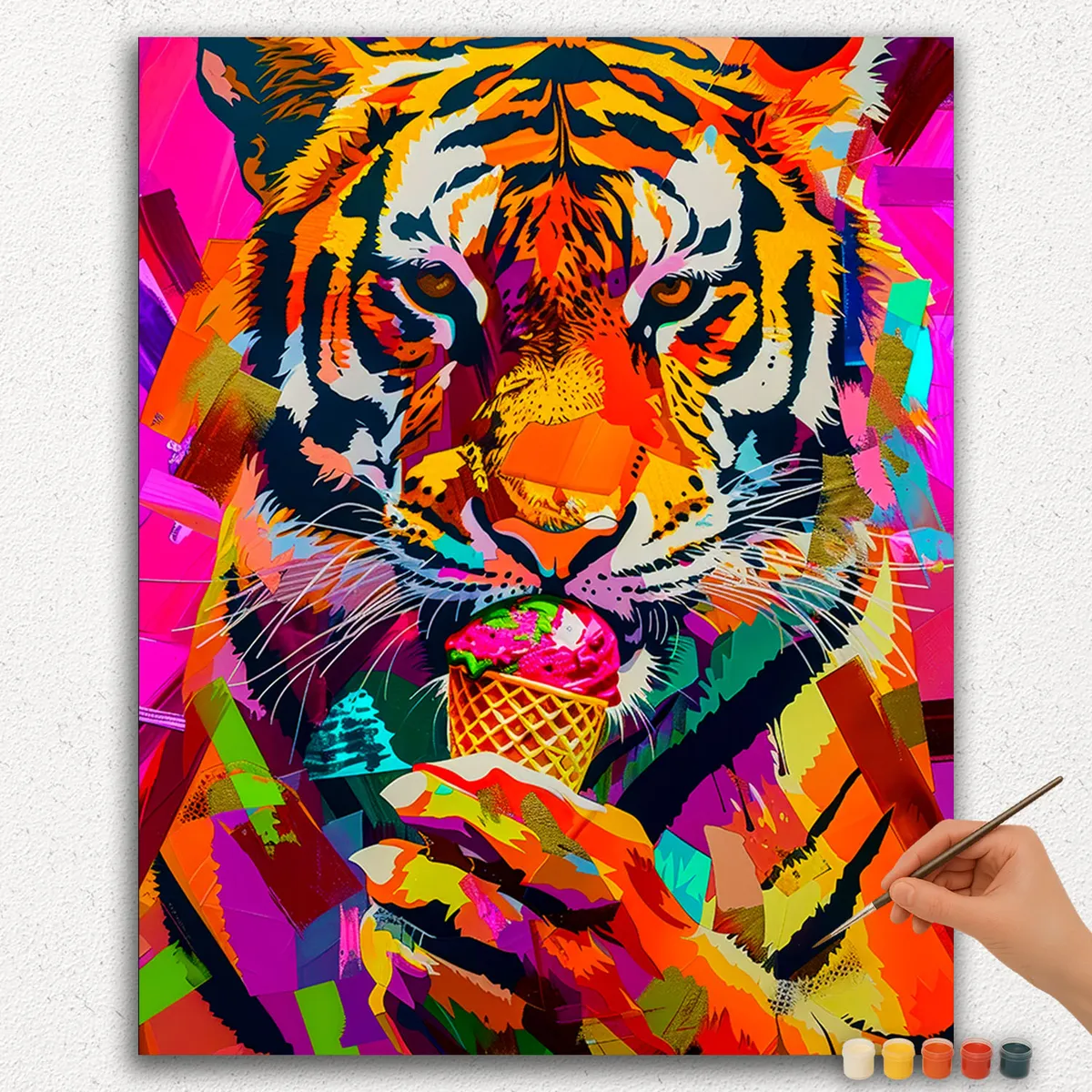 Erwecken Sie eine fantasievolle Szene zum Leben mit diesem charmanten Malen nach Zahlen-Set, das einen Tiger beim Eisgenuss zeigt. Perfekt für Anfänger und erfahrene Künstler gleichermaßen, ermöglicht Ihnen dieses Set, ein lustiges und einzigartiges Kunstwerk zu schaffen.