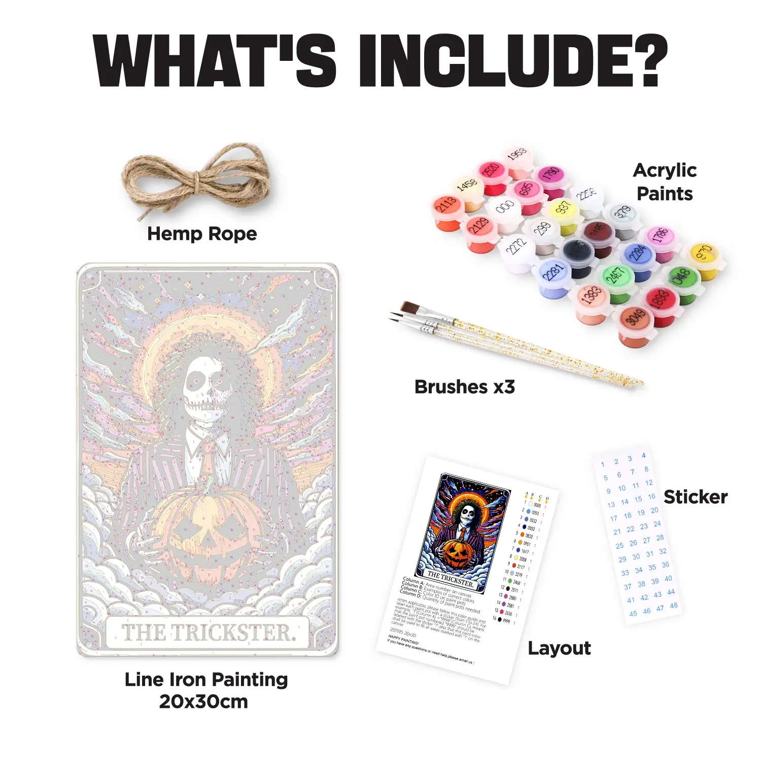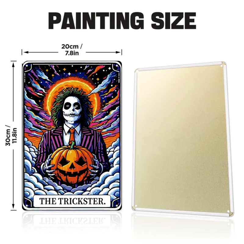 Das Trickster Halloween DIY Metallposter ist eine einzigartige Dekoration im Vintage-Stil, perfekt für Bars und Zuhause. Mit Maßen von 20×30 cm oder 7,8×11,8 Zoll verfügt dieses Poster über abgerundete Ecken und Kanten, die einen Hauch von Eleganz verleihen. Sein Malen-nach-Zahlen-Design ermöglicht es Ihnen, es mit lebendigen Farben zu personalisieren, was es zu einer lustigen und kreativen Aktivität macht. Das Metallmaterial sorgt für Langlebigkeit und eine elegante Oberfläche, was es zur idealen Wahl für alle macht, die ihrem Raum eine gruselige und zugleich künstlerische Note verleihen möchten.
