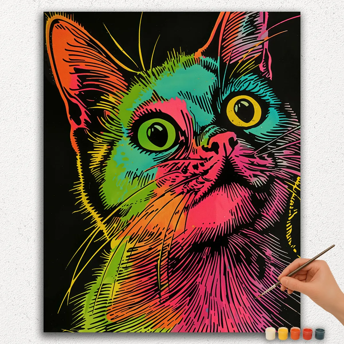 Erwecken Sie diese entzückende überraschte Katze mit unserem Malen nach Zahlen Set zum Leben. Der Ausdruck mit großen Augen und die lebendigen Farben machen dieses Gemälde zu einem unterhaltsamen Projekt für Anfänger und erfahrene Künstler gleichermaßen.